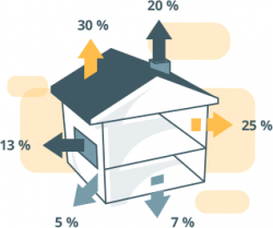 Outre la toiture et les combles, pensez à bien isoler vos murs (25 % des déperditions), les vitres et fenêtres (10 à 15 %) et les sols (7 à 10 %).