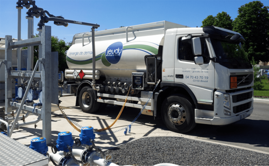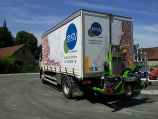 - D’un camion plateau équipé d’un chariot embarqué pour la livraison de granulés et bûches de bois, lubrifiants et AdBlue